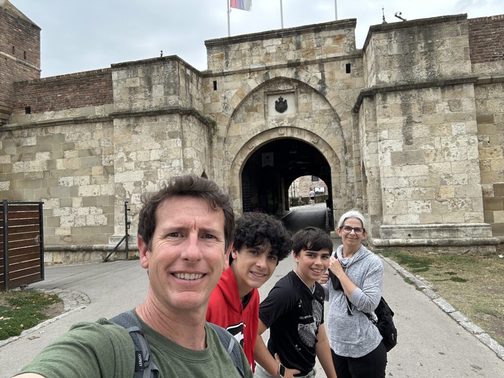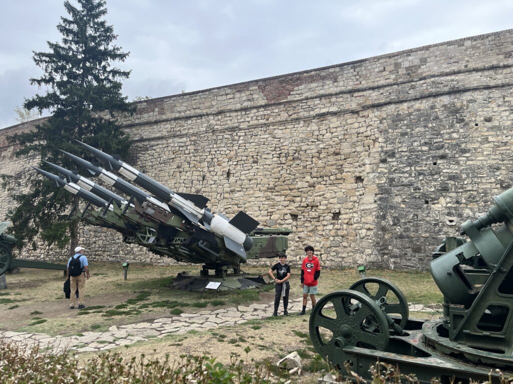Getting around the city was easy and fun thanks to Belgrade’s free public transportation in certain zones. It was a breeze hopping on buses and trams, letting us see more of the city without worrying about tickets or schedules. One highlight was visiting the Belgrade Fortress, which has stood for centuries overlooking the confluence of the Sava and Danube rivers. The fortress has been the site of numerous battles throughout history, from Roman times to the Ottoman Empire and beyond, giving us a fascinating glimpse into Belgrade’s strategic importance through the ages. We enjoyed the views from the ramparts—an amazing spot to sit and look out over the rivers.