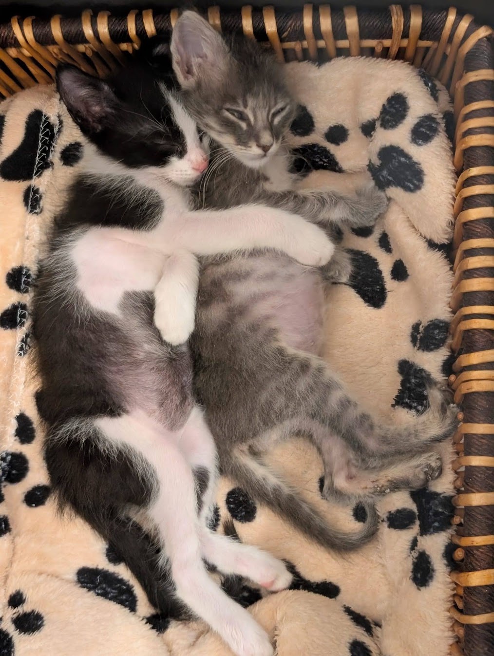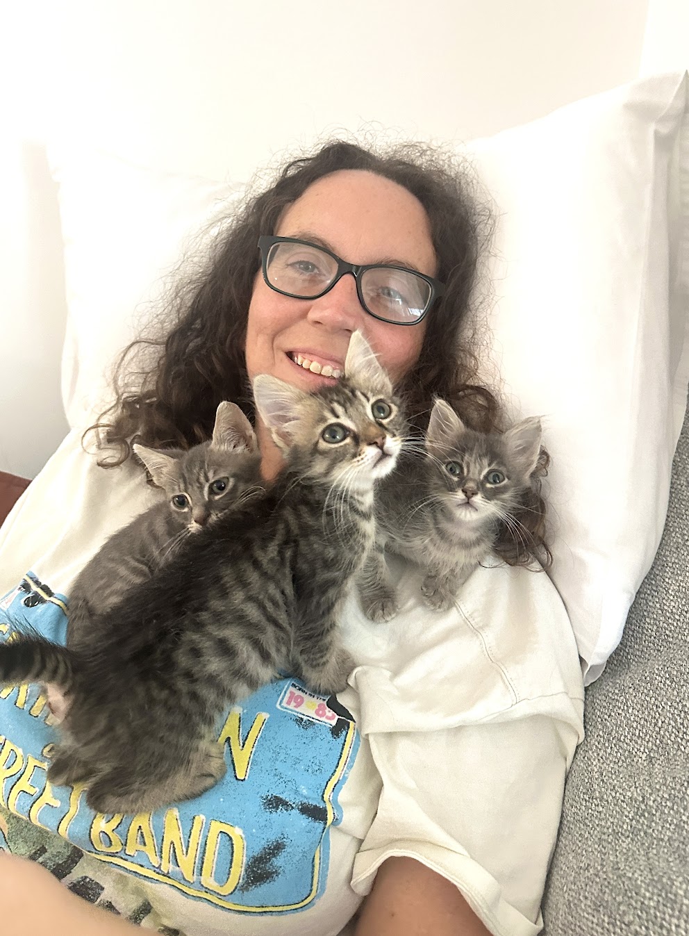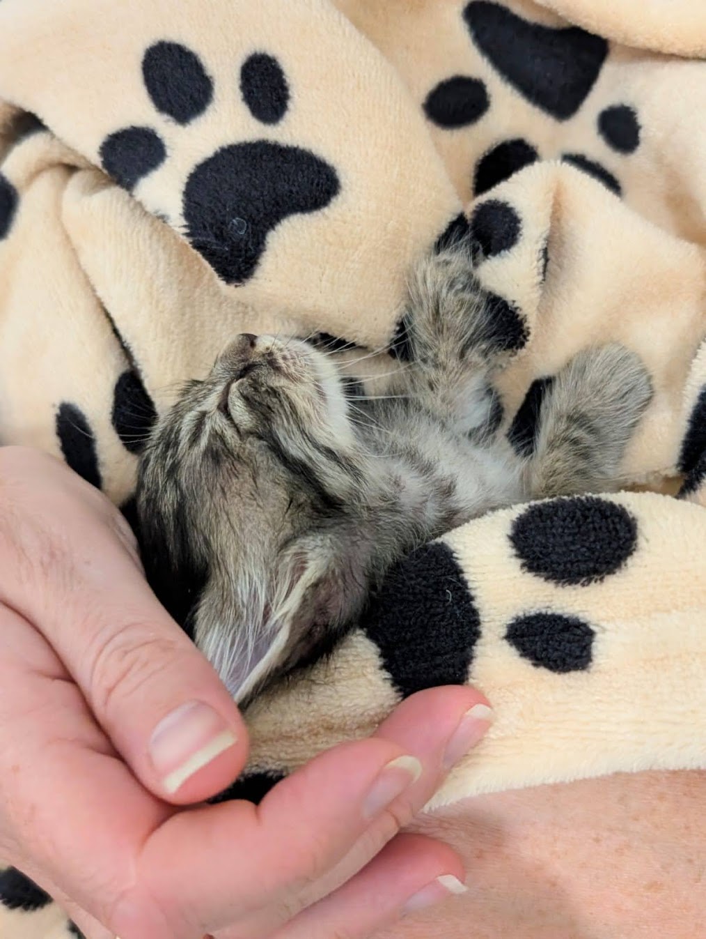 Vicki and Renee spearheaded this adventure. They both have a lot of experience fostering and taking care of animals. When they first arrived, these kittens were so small and fragile. Renee and Vicki were the true heroes — taking the night shifts, bottle-feeding every few hours, and making sure each kitten stayed warm and hydrated. Those early weeks were exhausting, but full of sweet, sleepy snuggles. Unfortunately, not long after arriving, all five kittens got sick. It was heartbreaking — so many vet trips, medications, and long nights for Vicki and Renee— but they worked tirelessly to nurse them back to health. Slowly, their eyes brightened, their appetites returned, and those little tails started wagging again.