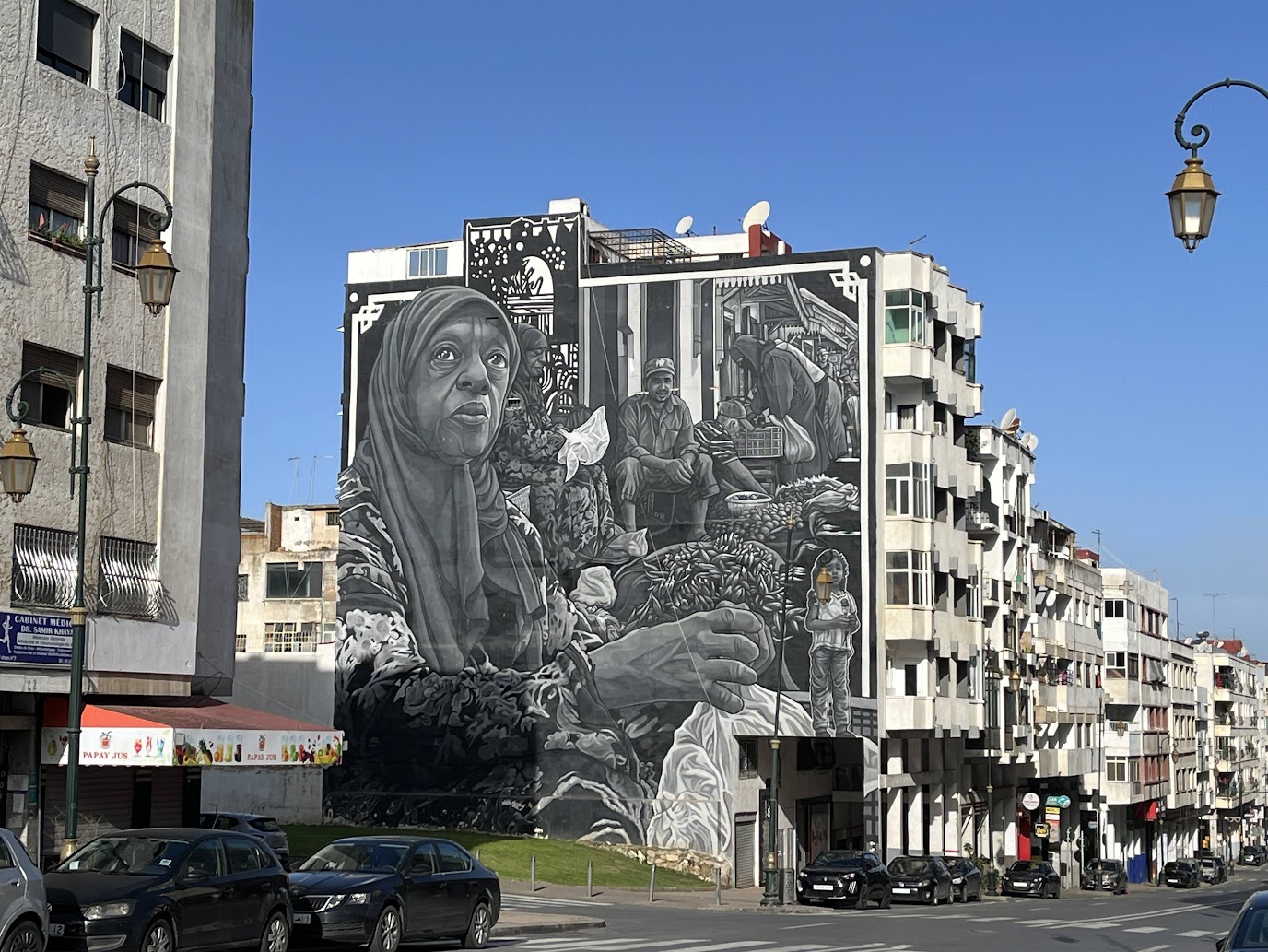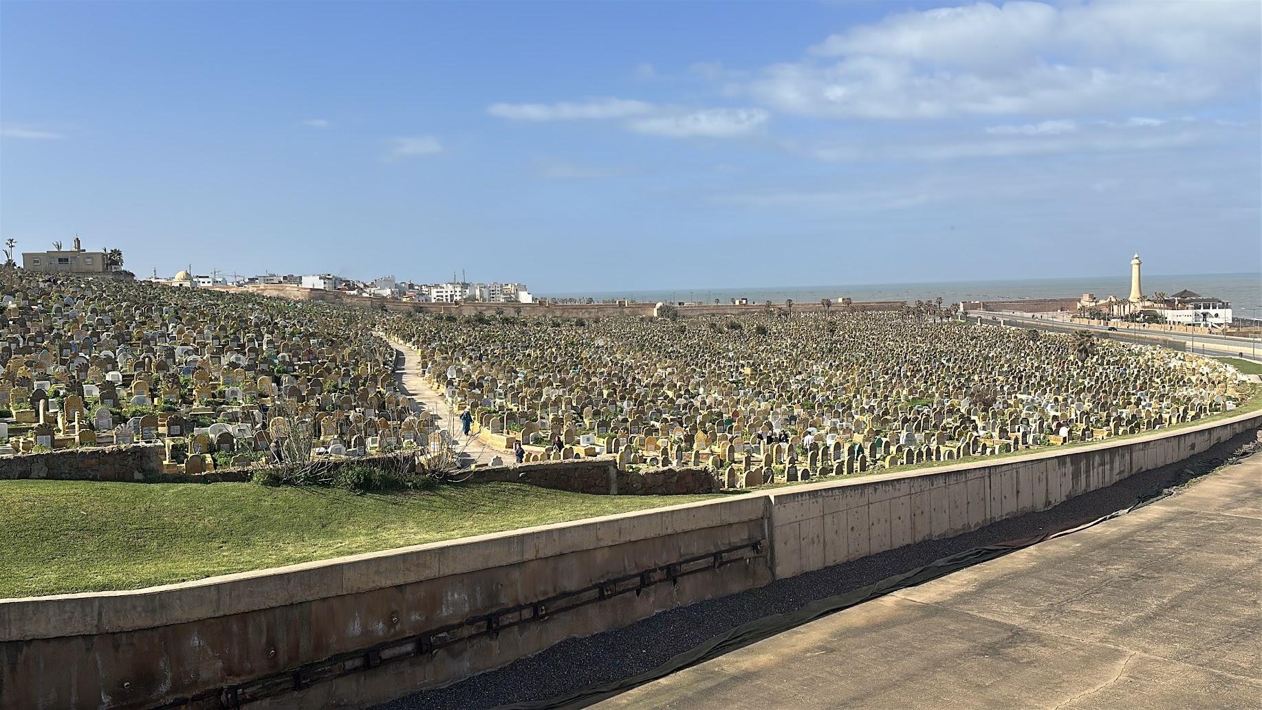 Day two was a Guru walking tour of Rabat. We like signing up for walking tours when we arrive in a city as an introduction. Our tour lasted three hours, and our guide, Ayoub, shared the history of Morocco as we walked through the city. We visited St. Peter’s Cathedral. It is an active Roman Catholic church located in the city center and inaugurated in 1921. It was made famous by a visit from Pope Francis in 2019. We also stopped at Hassan Tower. This landmark was commissioned by Abu Yusuf Yaqub al-Mansur, the third caliph of the Almohad Caliphate in the late 12th century. The tower would have been the largest minaret in the western Muslim world if it had been completed, but Yusuf Yaqub al-Mansur died in 1199, and construction on the mosque stopped. This is also the location of the remains of Mohammed V.