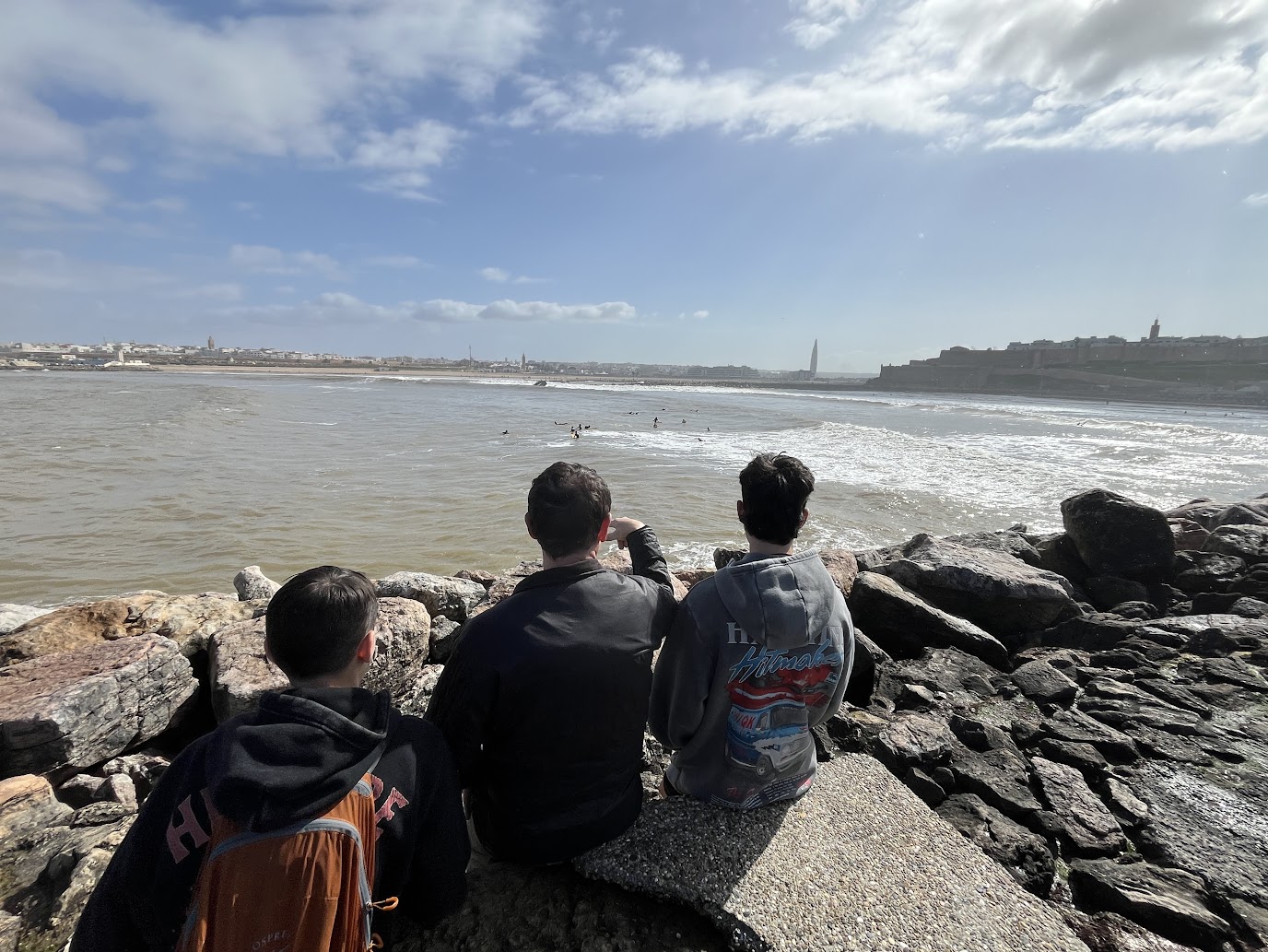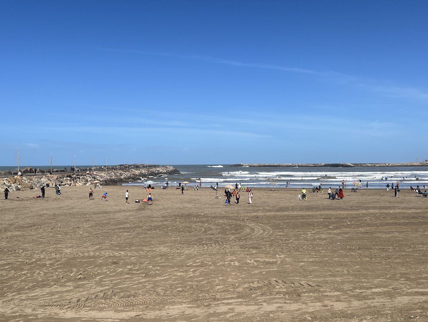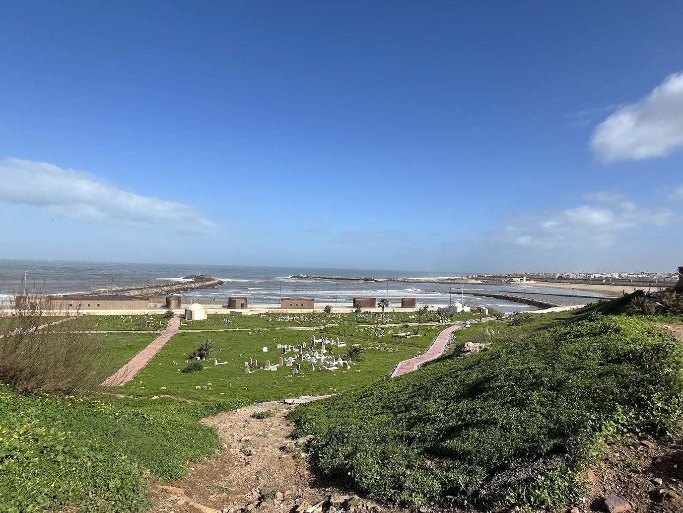 Our Airbnb host was nice and met us around 10 am to take our backpacks since the place was not ready. He also dropped us off at Rabat Beach so we could start exploring the city. Rabat Beach was full of people (it was Sunday). It was chilly for swimming, but there were still people out there and tons of surfers. The waves were surfable. We had a snack by the water and headed to Kasbah Oudaya, which is a UNESCO World Heritage site. It is known for its iconic blue-and-white Andalusian-style streets and panoramic views of the Atlantic Ocean.
