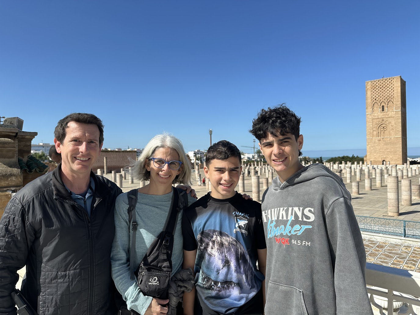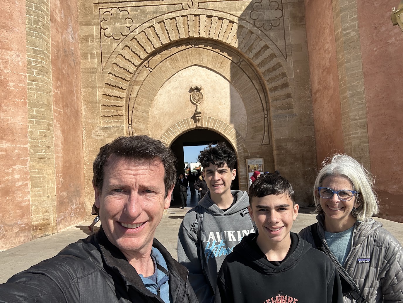 Michael, Lucas, Henry, and I set off on a five-day adventure in Morocco. It is just a short flight from Malaga, Spain, where we were staying. Our last family trip was in October 2019, to Jordan. It felt good to get back out on the road and explore a new country. We flew to Rabat, the country’s political, administrative, and cultural capital. It was an early flight, which drew complaints from the boys, but they don’t often have to get up early, so I had no sympathy for them.