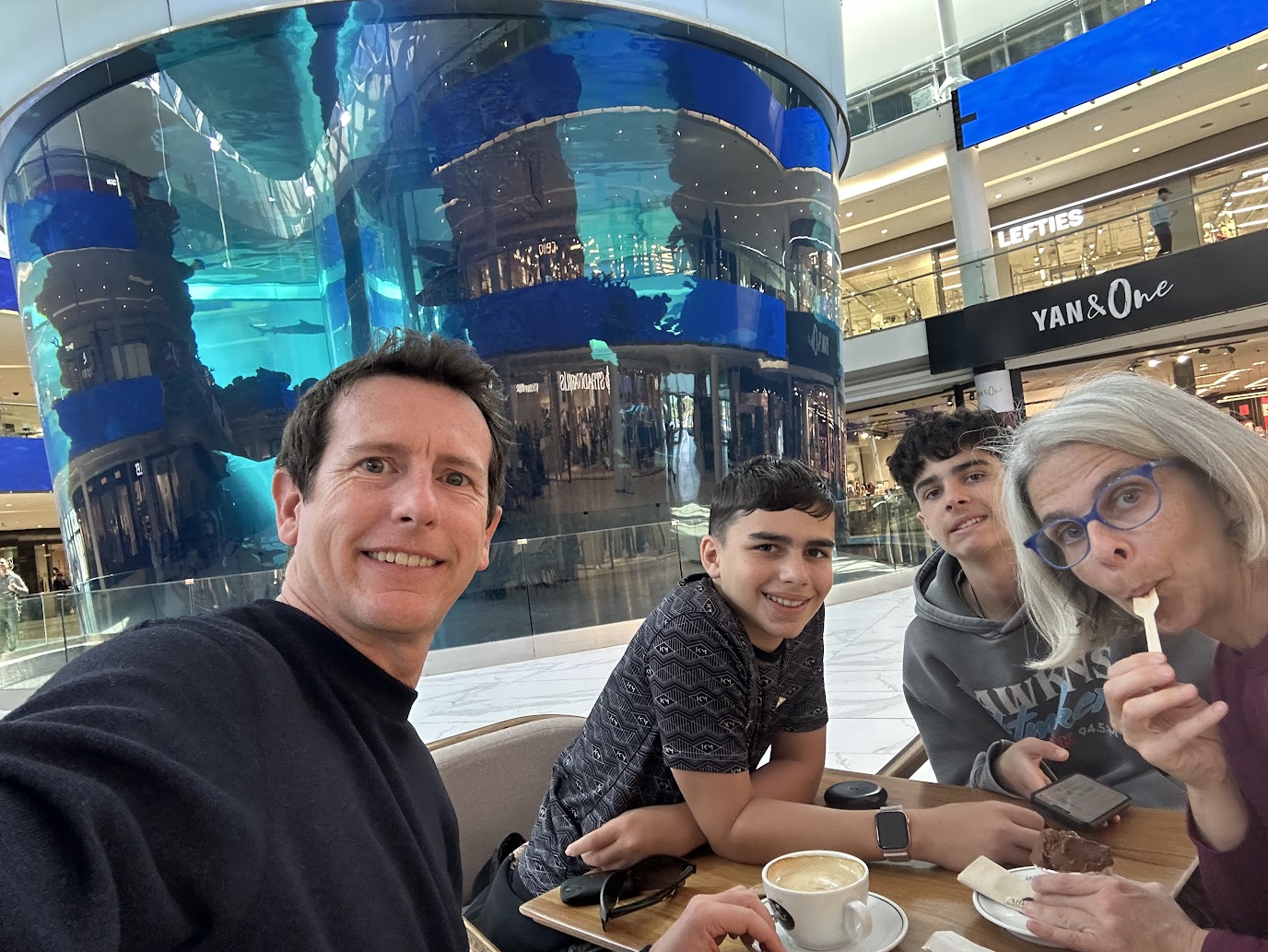 Our last full day in Morocco was the first day of Ramadan. During Ramadan, many retail shops are open, but many shops and most restaurants are closed during the day. We took the opportunity to visit Chellah, another UNESCO World Heritage Site. It is an ancient, abandoned 14th-century necropolis and Roman settlement that is home to over 70 white stork nests. It happened to be mating season while we were there. We got to witness the storks rebuilding their nests and reconnecting with their partners. We also stopped in at the mall, hoping to find something open for lunch. The only options were Burger King, KFC, and McDonald’s. No vegan options other than fries. The boys said they are officially tired of fast food for a while.