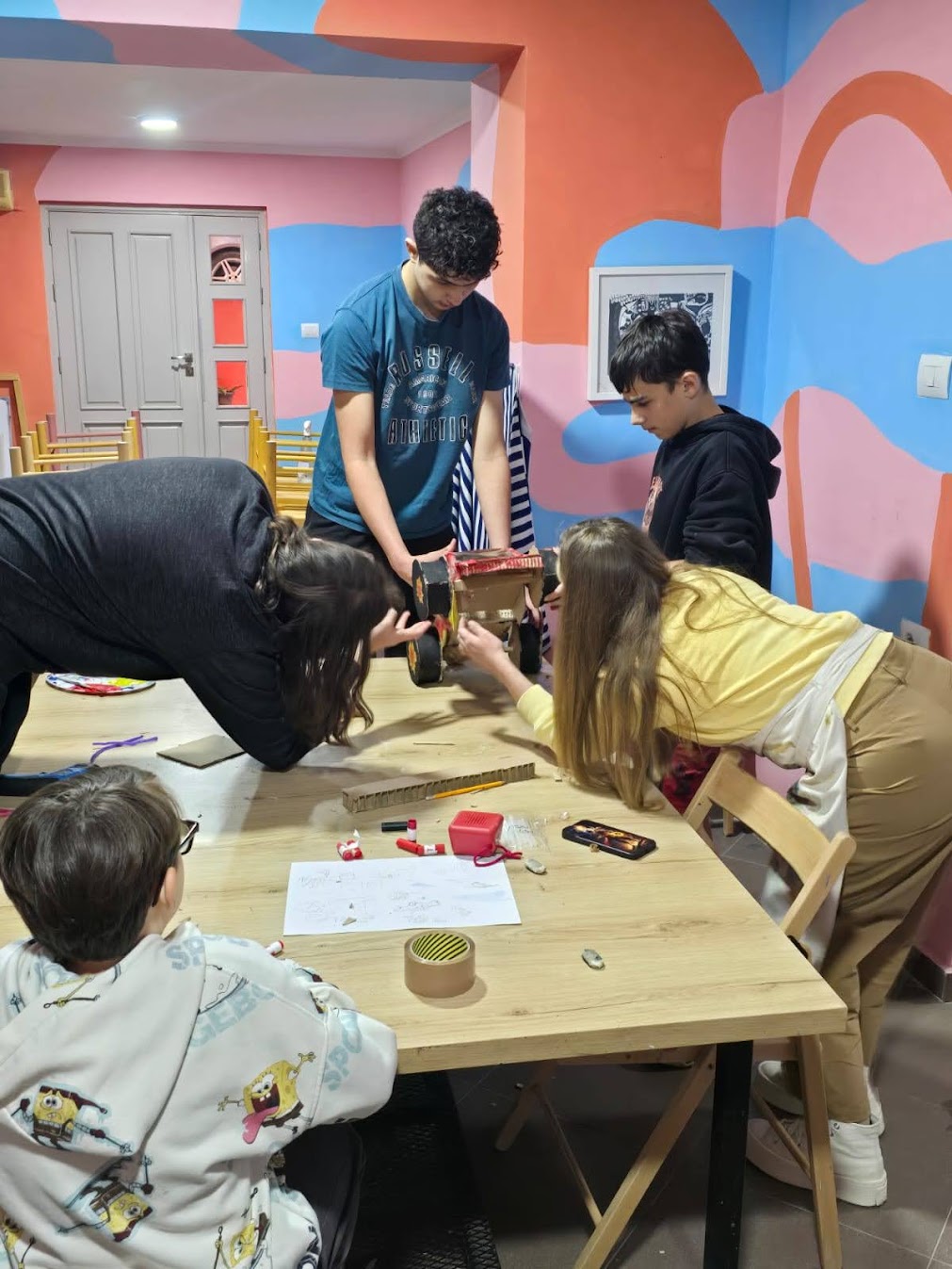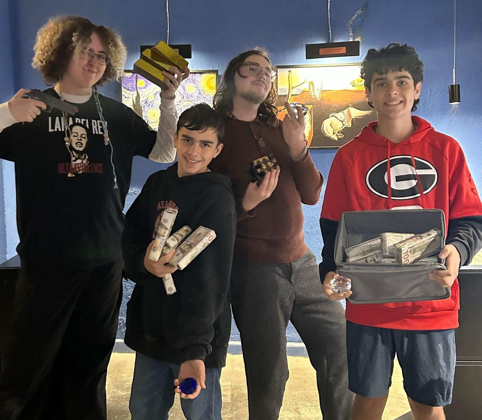 Even while moving around the world, the kids are still… kids. They’ve been diving into art, trying new activities, and keeping active in all kinds of ways—rock climbing, weightlifting, ping pong—you name it. Henry has been really into chess lately and has plenty of people to play with. He also found his way to a trampoline park, and Lucas and Henry conquered an escape room with friends. Vicki took the little kids to check out Duff. They even have a Krusty Burger.