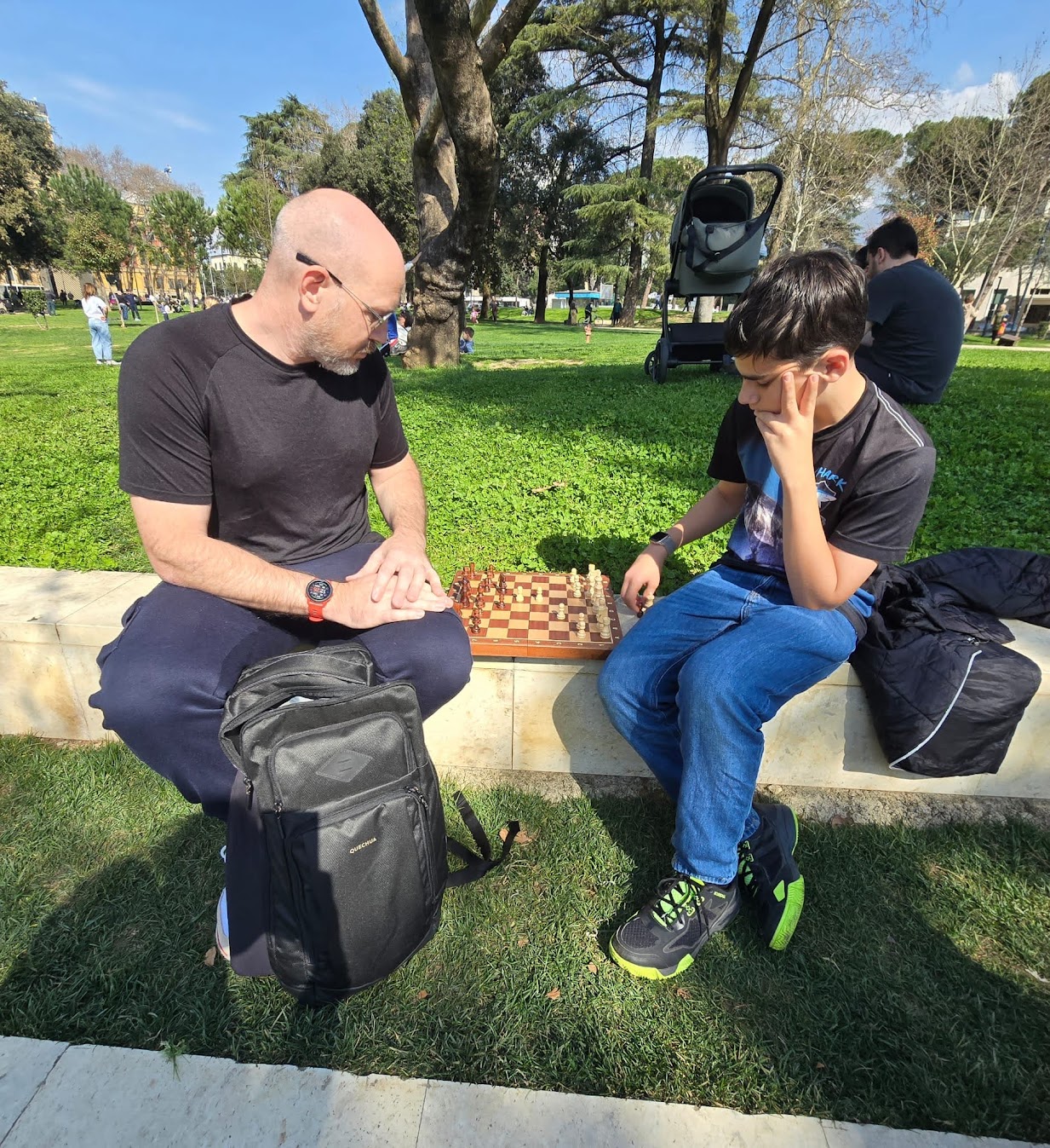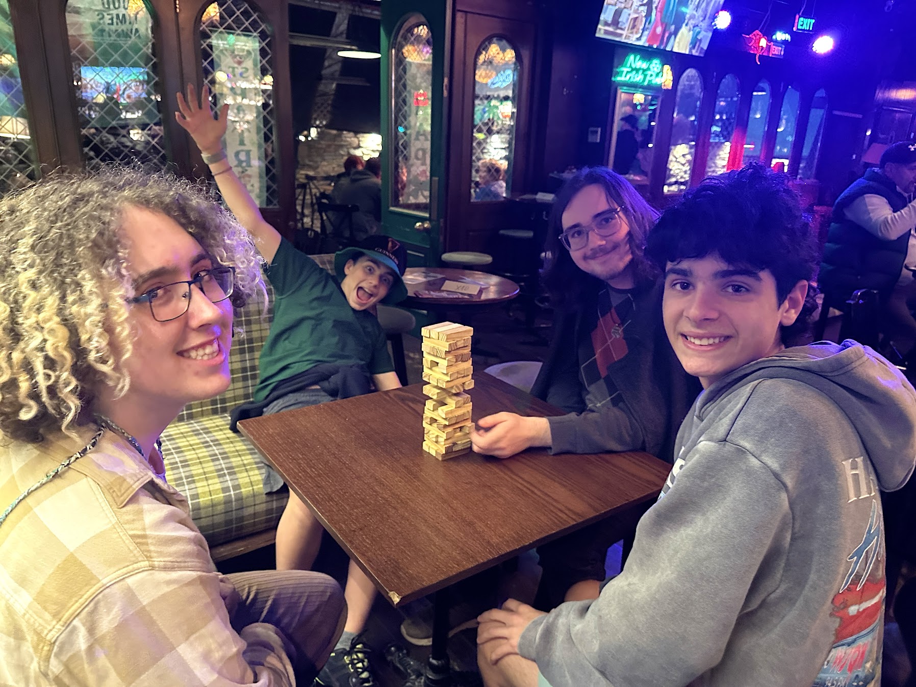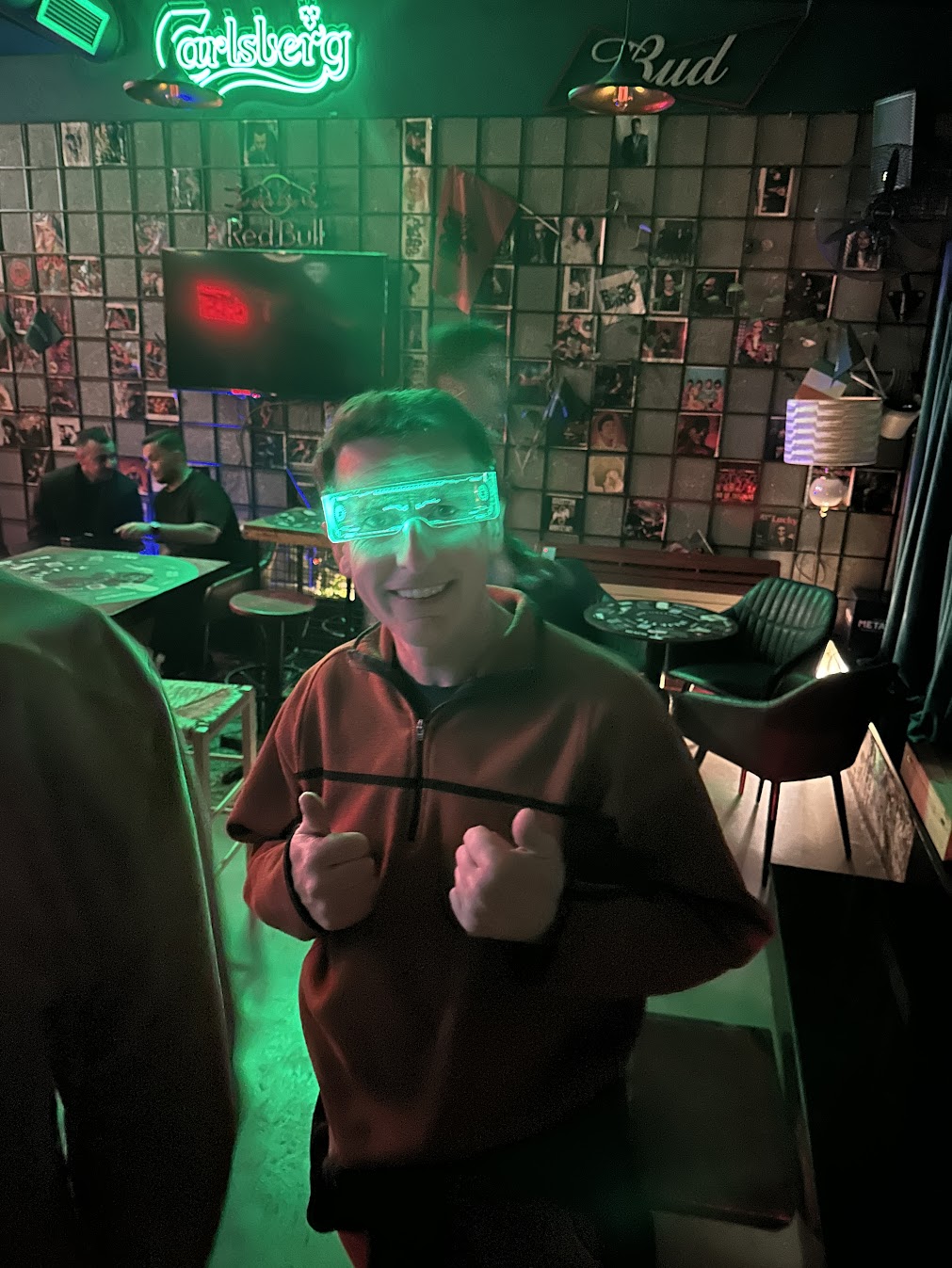 It hasn’t all been big outings and events. The dads have managed to sneak out for some pool nights (because some traditions travel well), and Michael recently picked up a pair of glasses that he’s pretty excited about—one of those small, random finds that somehow becomes part of the story. We also celebrated St. Patrick’s Day at an Irish pub here in Tirana, because — why not?
