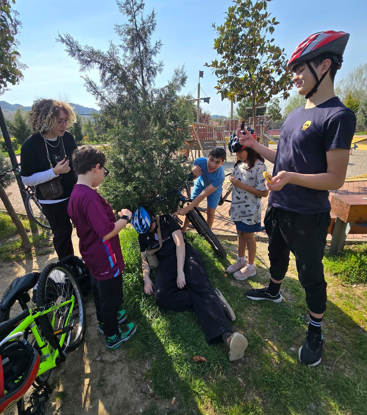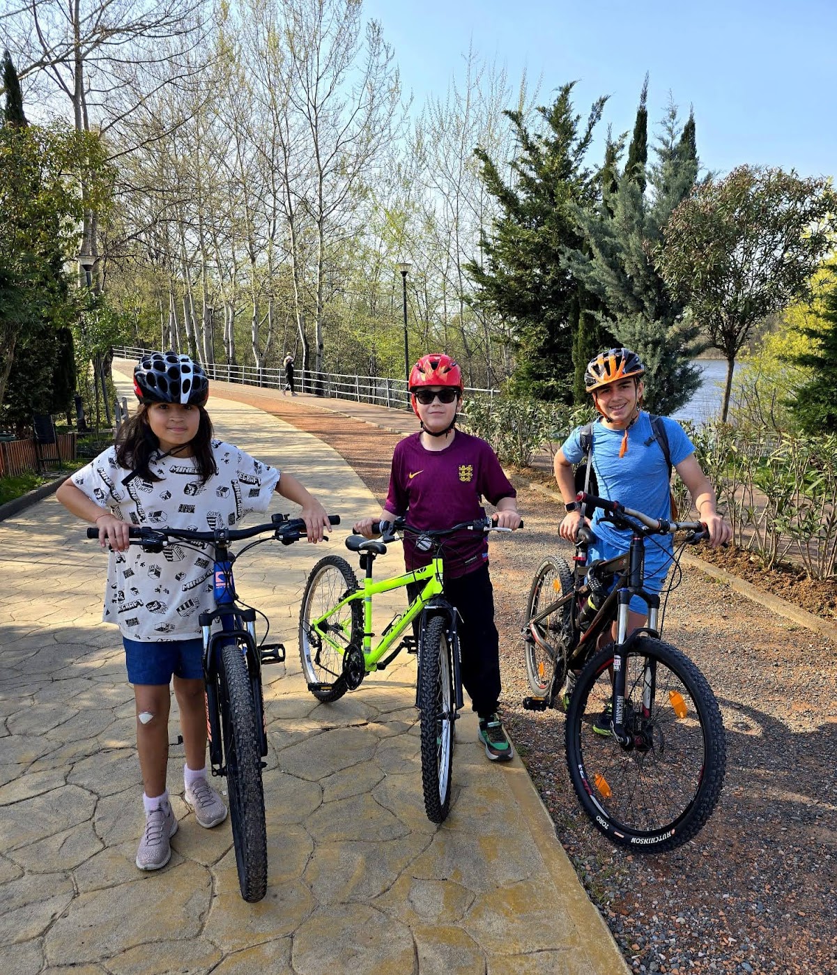 We had a period of rain and some illness that forced us into something we don’t always allow—slowing down. It was ok because we love our Airbnb. We read, played games, and leaned into a rhythm that felt suspiciously like normal life… just in a different country. It was cozy. Then the sun showed up, and everyone collectively decided: we are going outside immediately. Lucas, Henry, and Michael rented bikes and spent the day riding around Tirana’s massive lake park with friends. It’s one of those places that makes you forget you’re in a city—wide paths, trees everywhere, space to just go. Michael rented an e-bike and is hooked.
