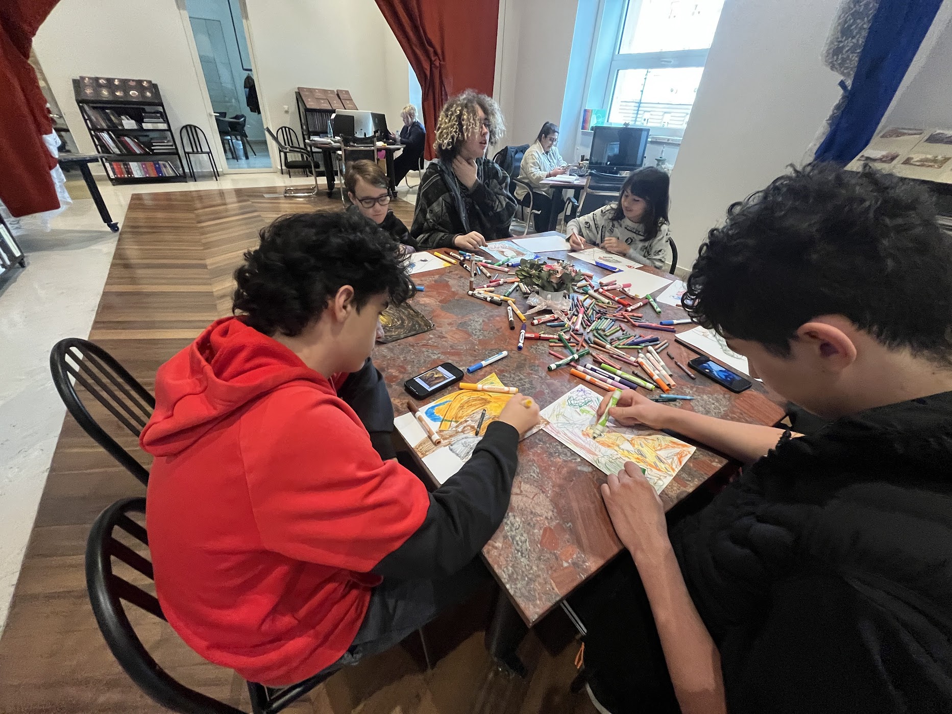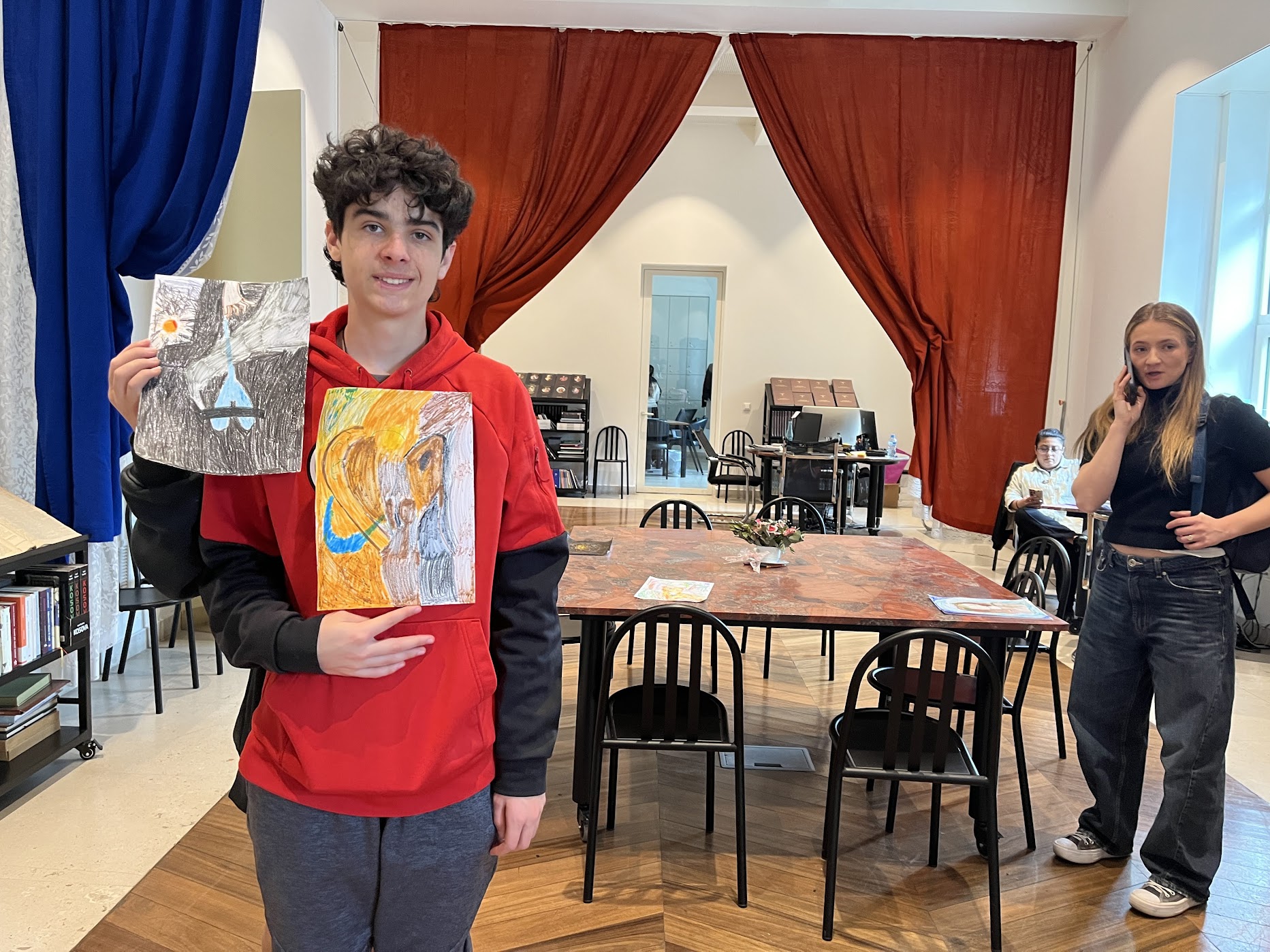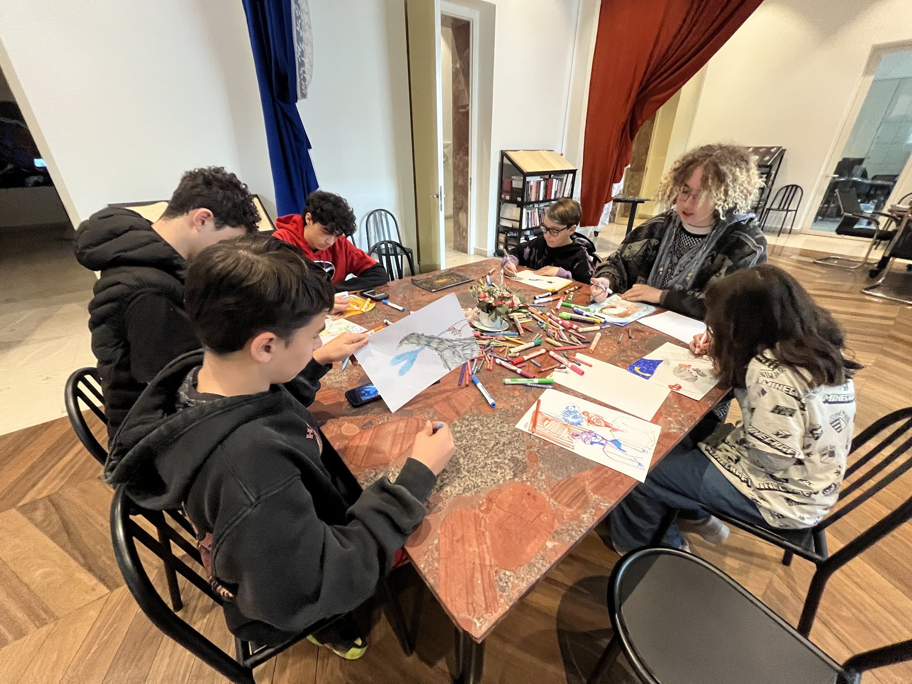 We took an impromptu trip to Parliament with Anya, the art teacher. The Prime Minister of Albania is an artist, and the first floor of Parliament is an art gallery. The kids explored the exhibit and then did some art of their own. It already felt like a slightly unusual field trip, and then, in true travel fashion, it got weirder—in the best way. Jake and Gabe found a piano and just started playing. In Parliament. Casually. Like this is something kids do all the time. The staff even filmed them. There’s something about travel that creates these completely unplanned, slightly surreal moments where you just think, well… this is definitely going to be a story later.